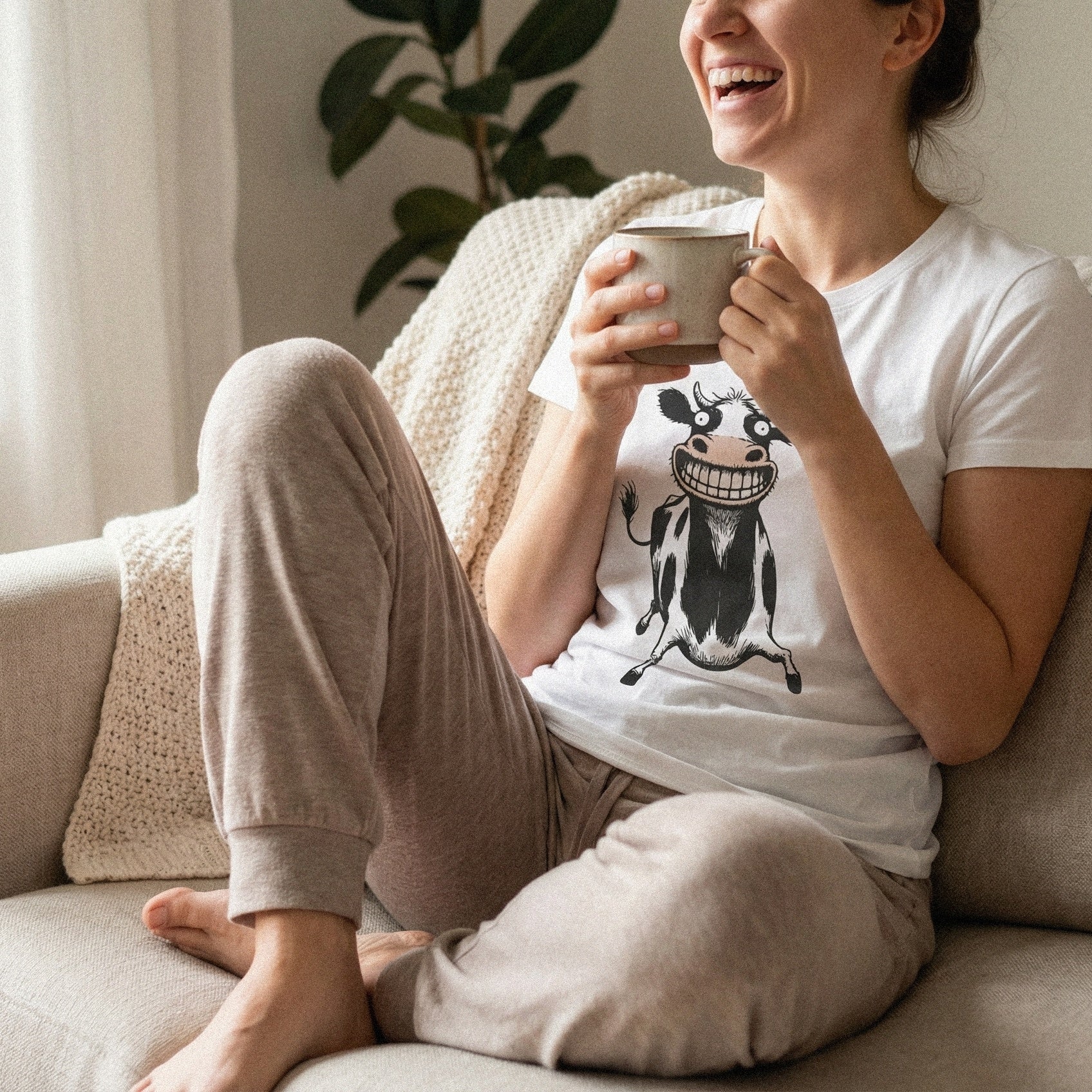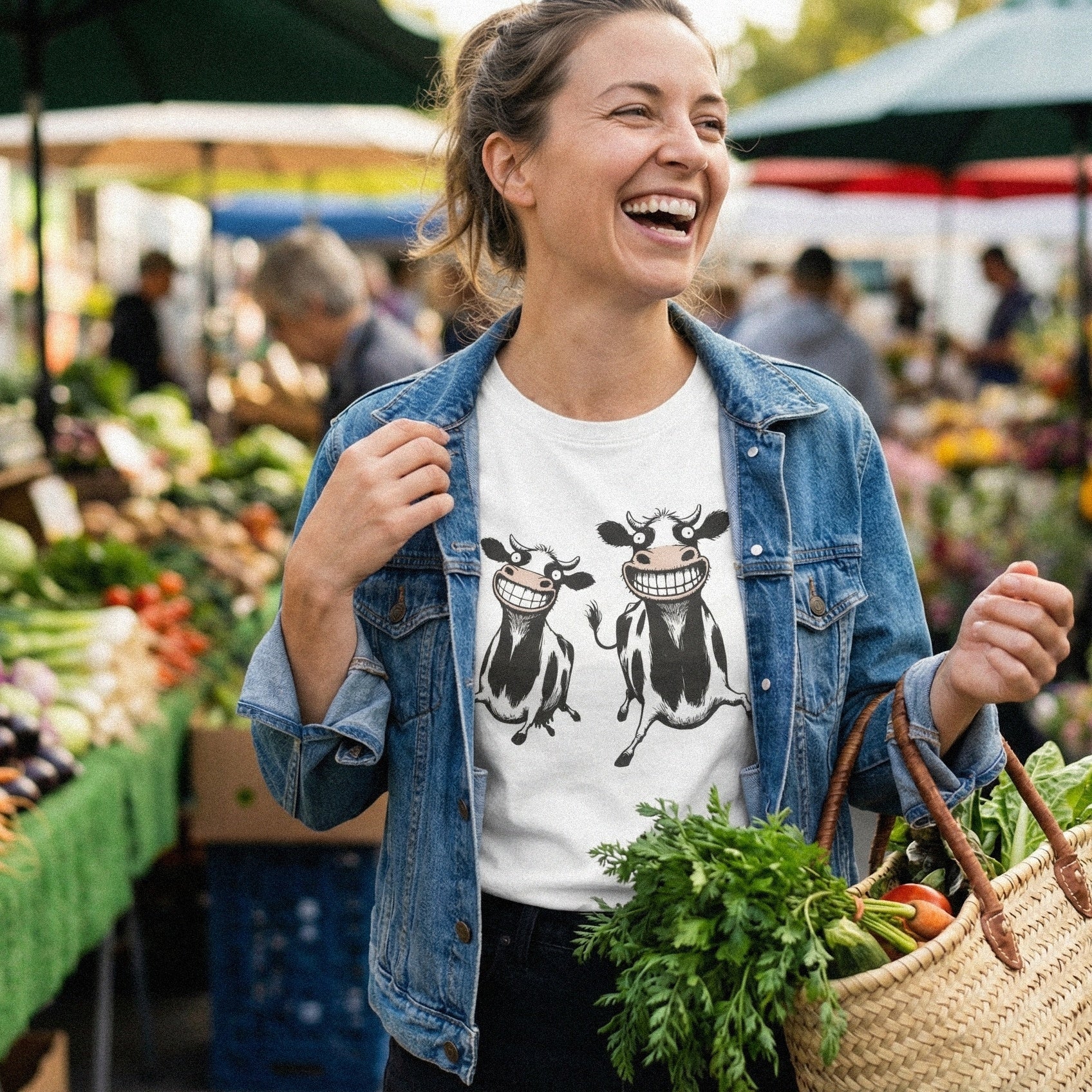 Grinning Cow PNG, Funny Cartoon Cow Art, Cute Farm Animal Clipart, Smiling Cows Digital PNG, Joyful Farmhouse Decor Printable Shirt